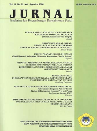 PERAN KAPITAL SOSIAL DALAM PENGUATAN KETAHANAN SOSIAL MASYARAKAT (Studi Kasus di Sulawesi Tengah) Suradi Suradi 1-10 PDF