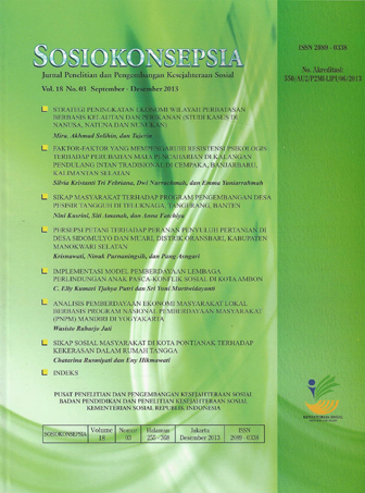 IMPLEMENTASI MODEL PEMBERDAYAAN LEMBAGA PERLINDUNGAN ANAK PASCA-KONFLIK SOSIAL DI KOTA AMBON C. Elly Kumari Tjahya Putri, Sri Yuni Murtiwidayanti 315- 330 PDF